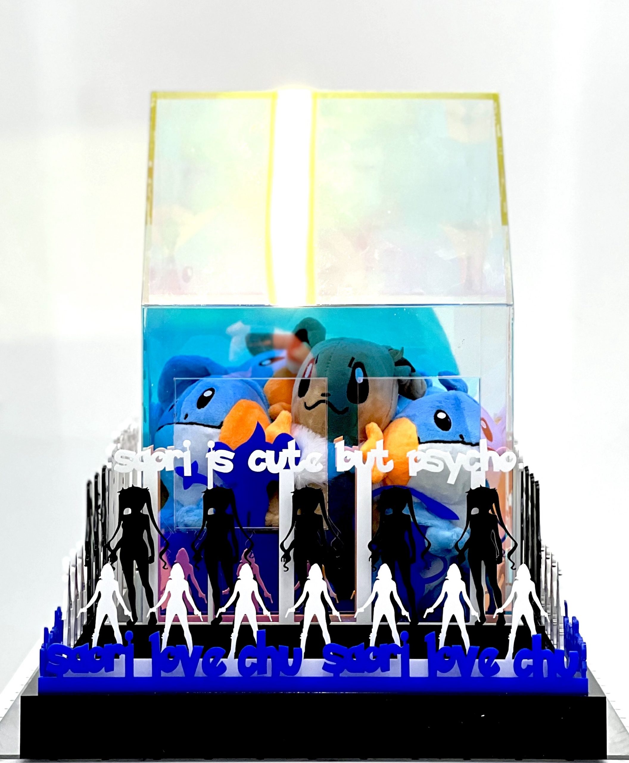 “Blue Fantasy: Mudkip and Eevee’s Kawaii Abode” by Saori Nakamishi, a renowned member of the Japanese neo-pop art collective Studio CrazyNoodles, is a mesmerizing piece from her acclaimed series “Whimsical Plexiworlds and Pokémon Houses: Kawaii Haven.” This artwork is a remarkable journey into the imaginative and whimsically playful mind of Nakamishi, blending traditional Japanese pop culture with a contemporary artistic vision.