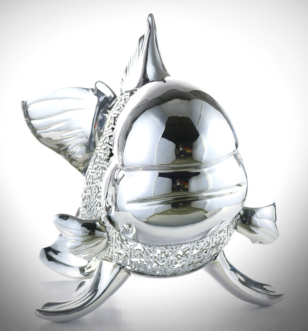 Furthermore, the choice of materials, with the bodies of the koi made from Japanese characters, underscores a harmonious blend of tradition and modernity. The sculptures become a canvas where the ancient art of calligraphy meets contemporary sculpture, creating a dialogue between the past and the present.
